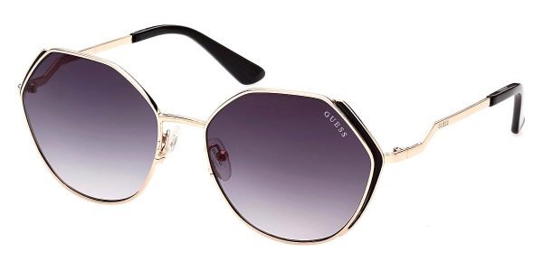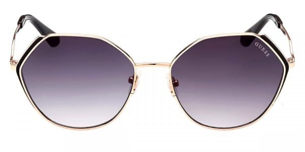 Guess GU7842 28B 58 sunglasses in Shiny Rose Gold. The 28B Shiny Rose Gold color frame is complimented with Gradient Smoke finish lenses. This model features Metal Geometric Shape in size 58-17-140.