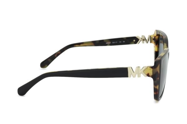 Michael Kors Acadia MK2199 395087 55 sunglasses in Bi-layer Black/Amber Tortoise. The 395087 Bi-layer Black/Amber Tortoise color frame is complimented with Dark Gray Solid finish lenses. This model features Acetate and Metal Rectangle Shape in size 55-17-135.